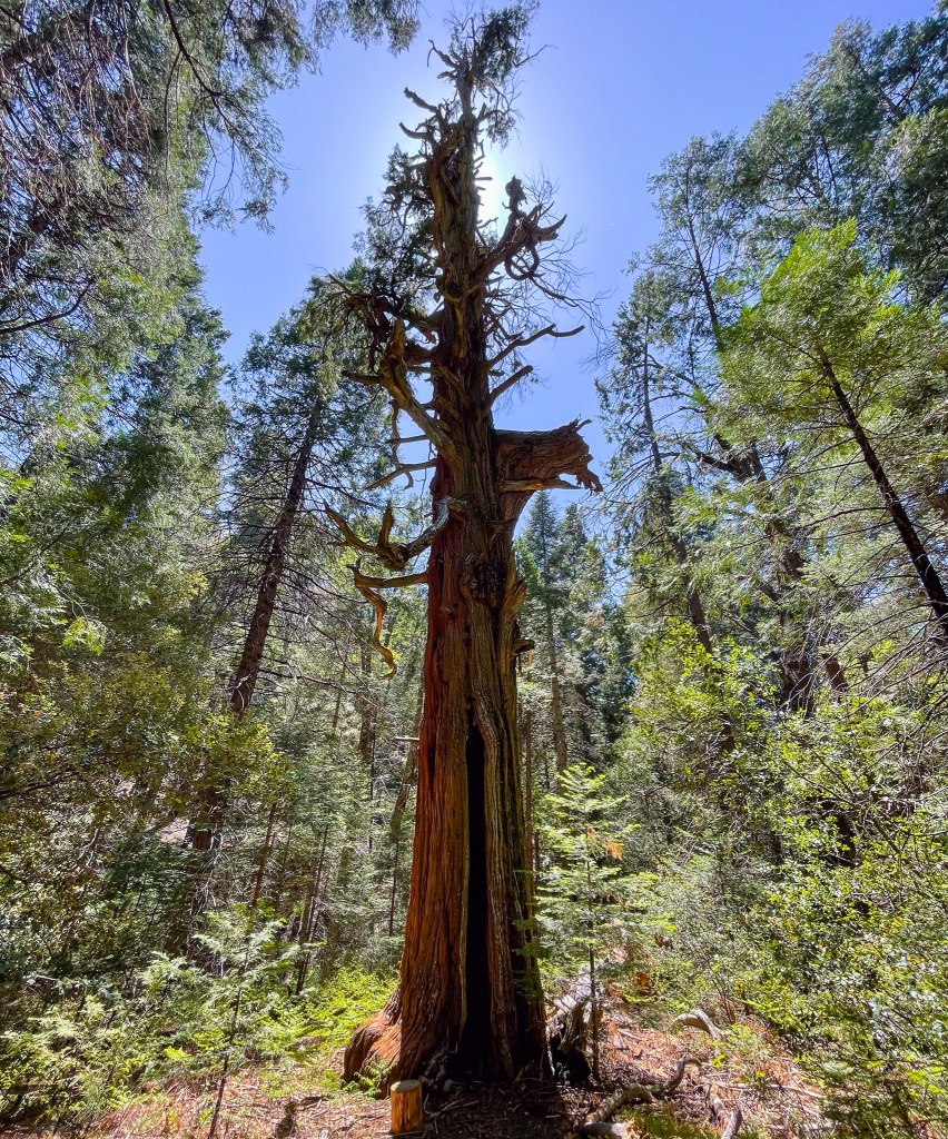 Reaching a junction, I eschew this lovely forest for now and cross Doane Creek. The canopy, now much more open, features some particularly massive incense-cedars that thrive on these west-facing slopes. One particularly large incense cedar, who I’ll name Hot Tamale, gets its own display placard.