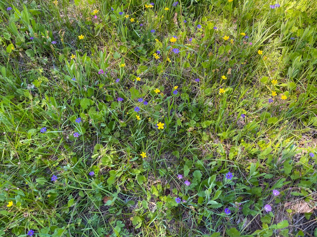 Wildflowers flourish on the fringes of these woodlands, particularly so when the trail meets Lower Doane Valley. Blue-eyed grasses, buttercups, checkerbloom and baby blue eyes paint splashes of blue, pink and yellow in fields of fresh green grasses and forbs.