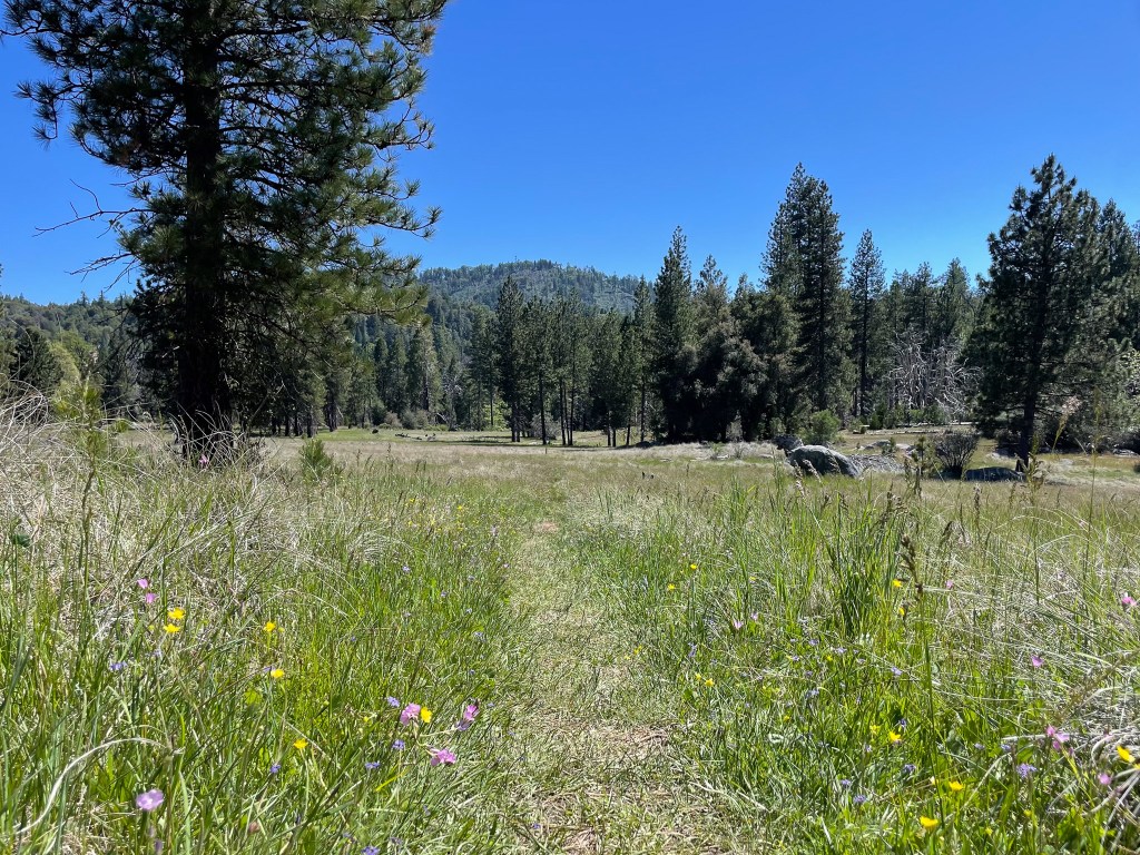 After reaching a small meadow, the influence of Doane Creek wanes and a transition to a more traditional Southern California woodland takes over. Stately Ponderosa Pine and Black Oaks stake claims along grassy outcrops.