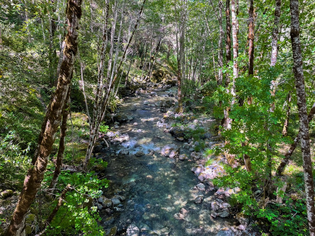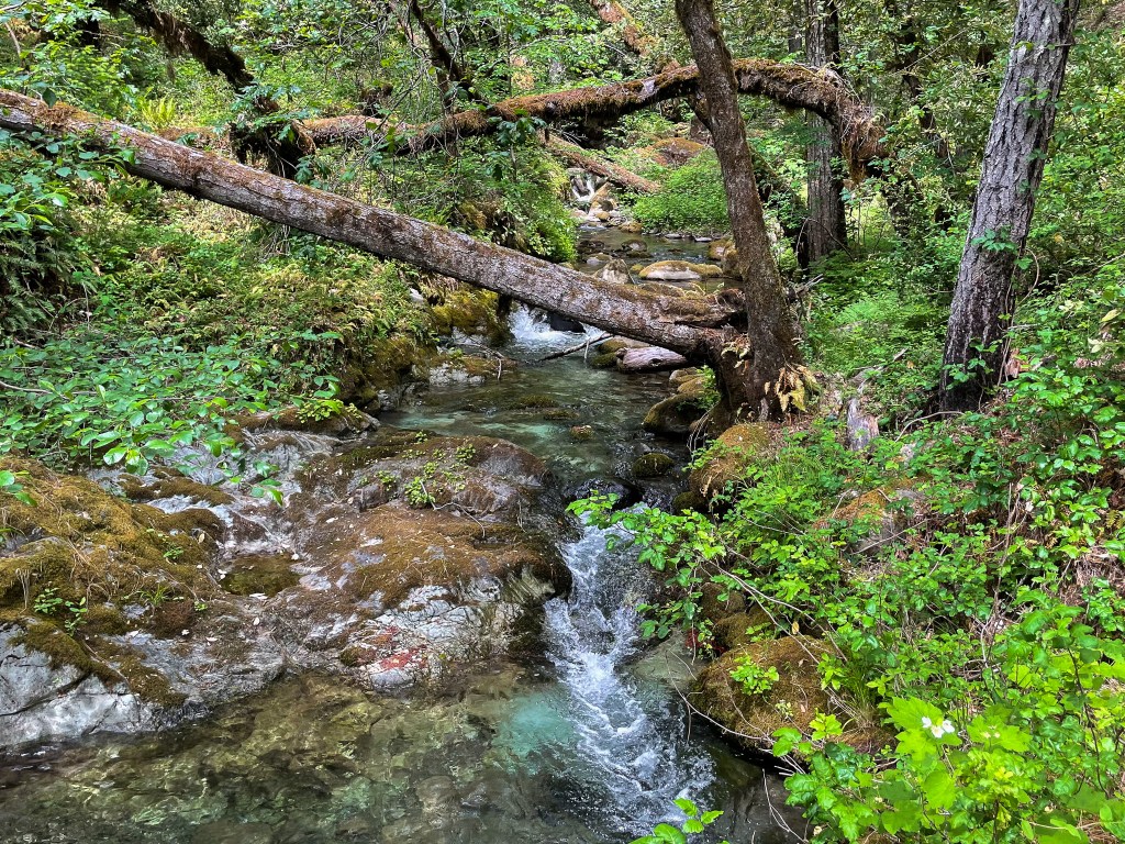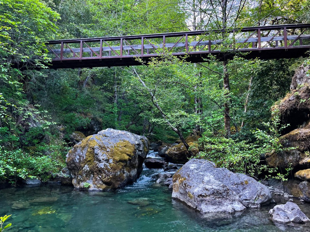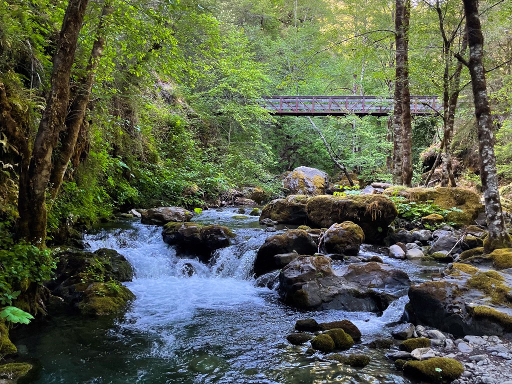 After so long, a rickety bridge over Blossom Creek marks the end of Mule Creek Canyon. Add this to the growing list of gorgeous side creeks along the Rogue River Trail.