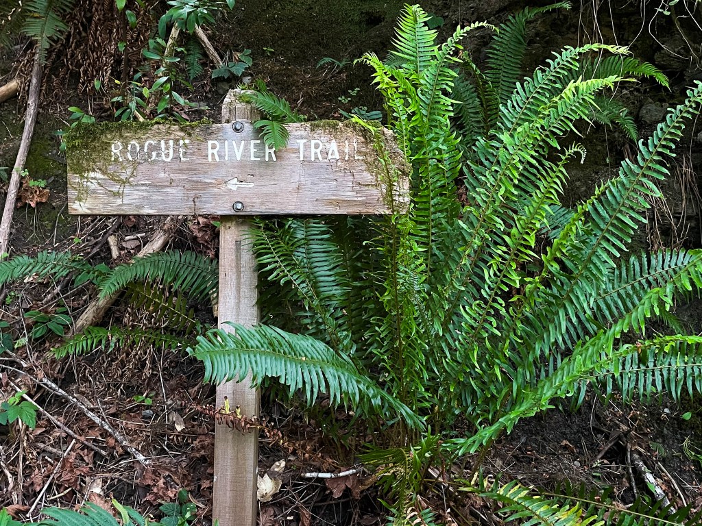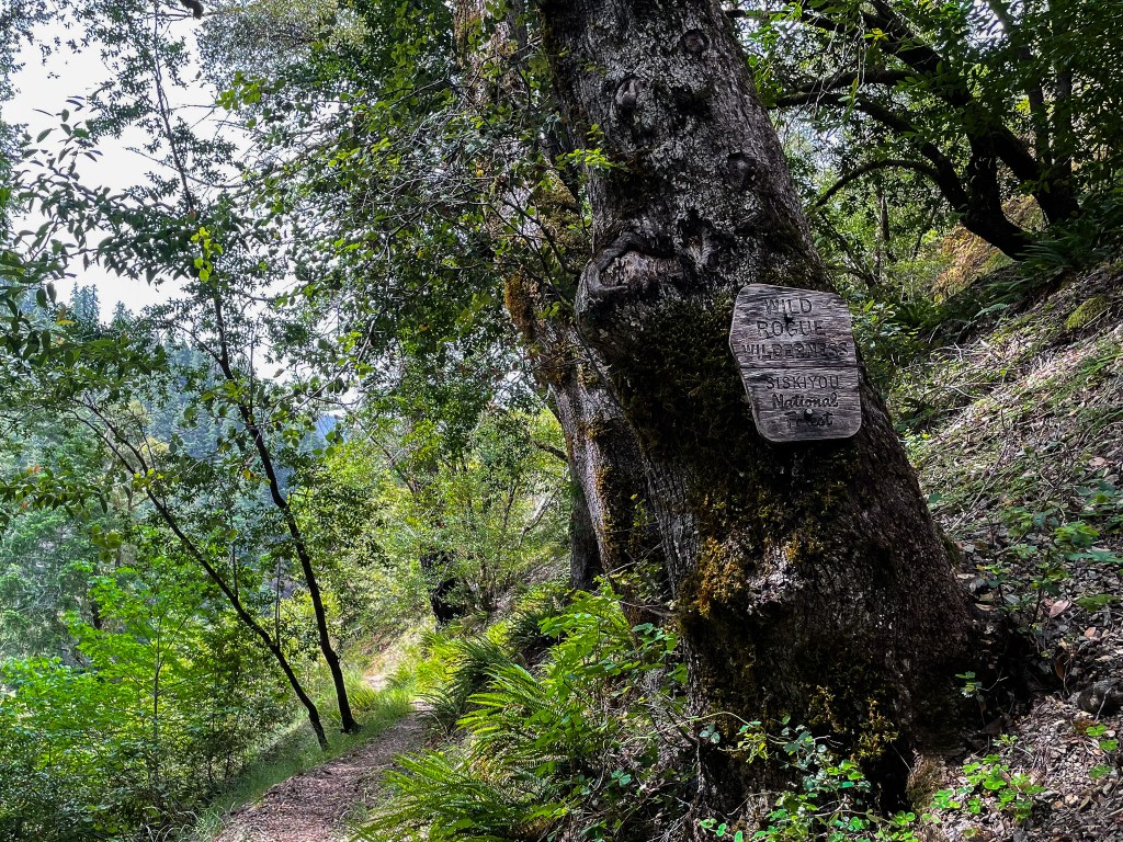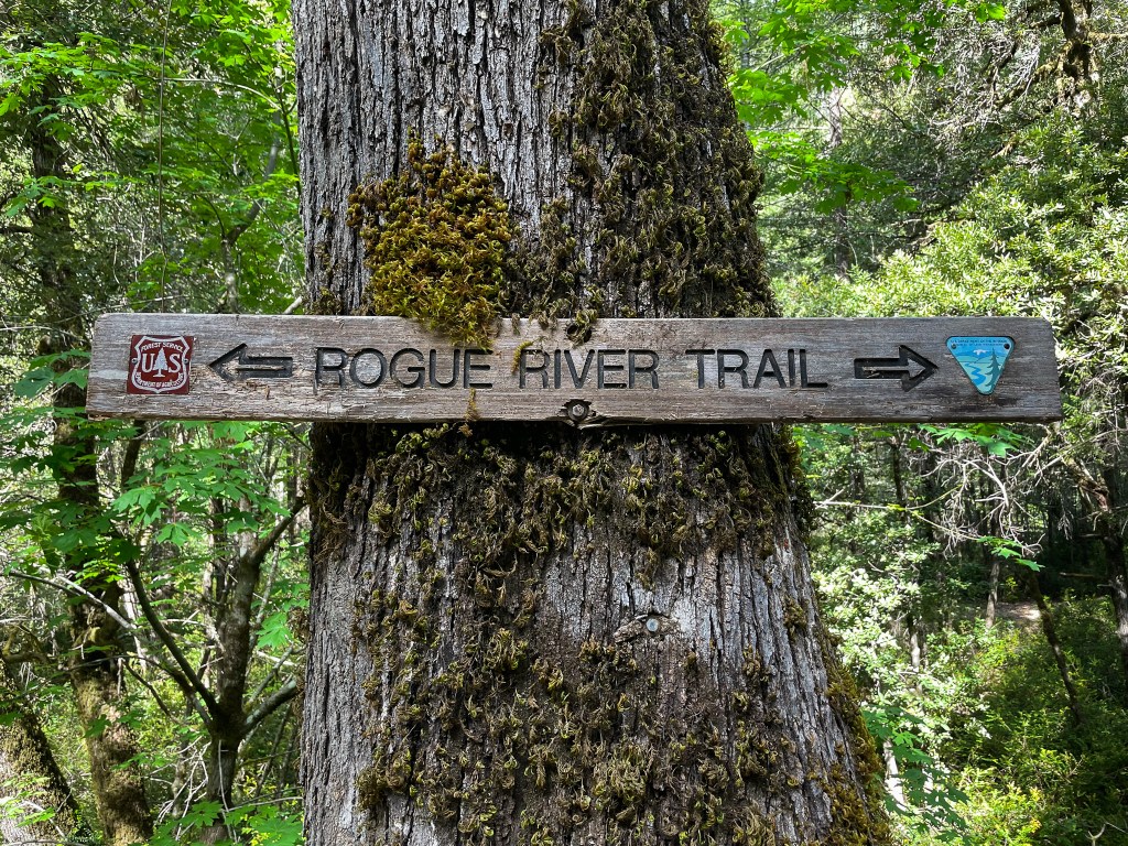 The evidence of human life is everywhere: parking lots full of cars, the sprawling Rogue River Ranch with accompanying signage, and people with JBL speakers flubbing around. This is the first backpacking trip I’ve ever taken that has felt like it has an intermission: The show has been paused, I can go to the bathroom and we will resume in about 30 minutes. I focus on following signage bolted into the tree guiding me through the tangle of dirt roads.