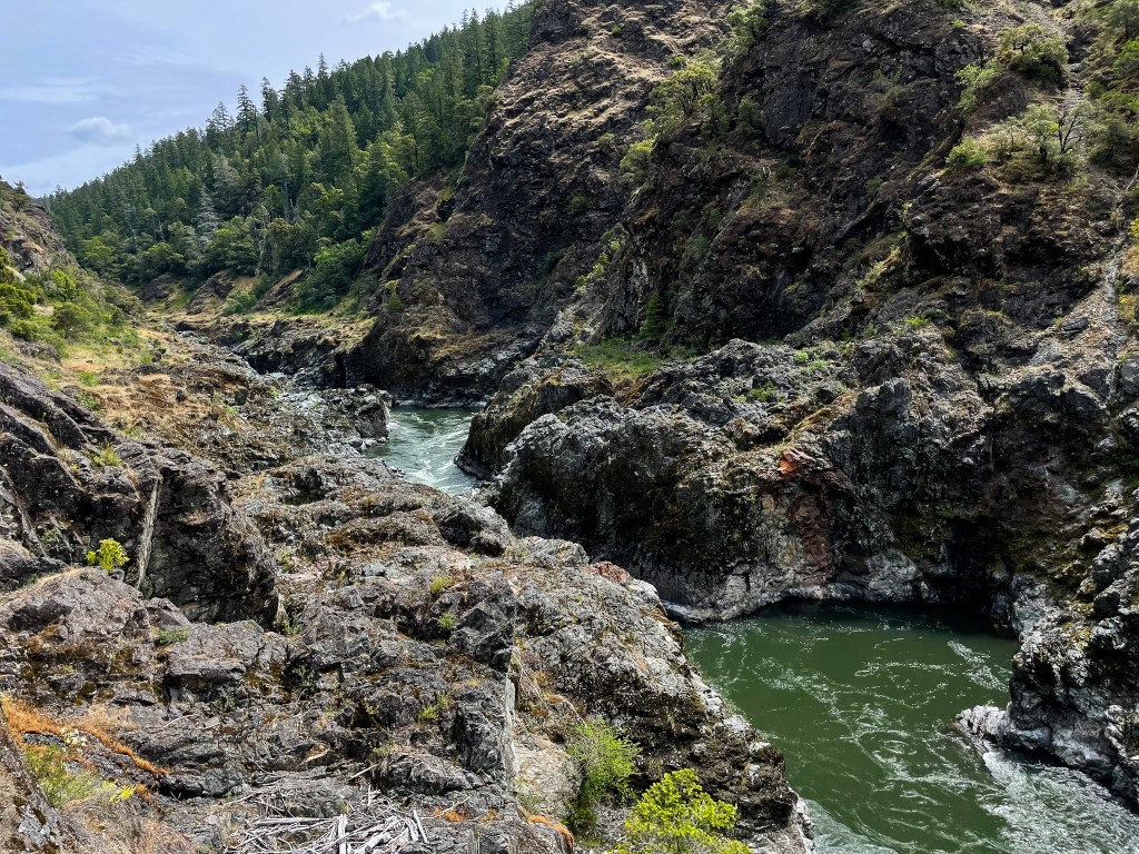 Day three is when longing for societal comforts typically starts to set in. After eating nothing but cardboard for the past 48 hours (yes, I understand that this is my choice), I’m dreaming of the hot shower and hot food that awaits me in Crescent City. I strike off early for my early morning ritual, the Admiration of the Rogue River.