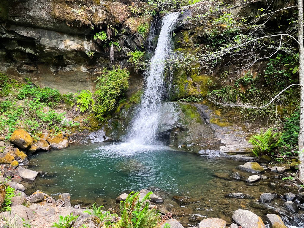Passing by the decrepit Clay Hill Lodge, I stumble onto one of the scenic highlights along the entire trail. Flora Dell Falls careens off of a mossy ledge into a beautiful turquoise pool.
